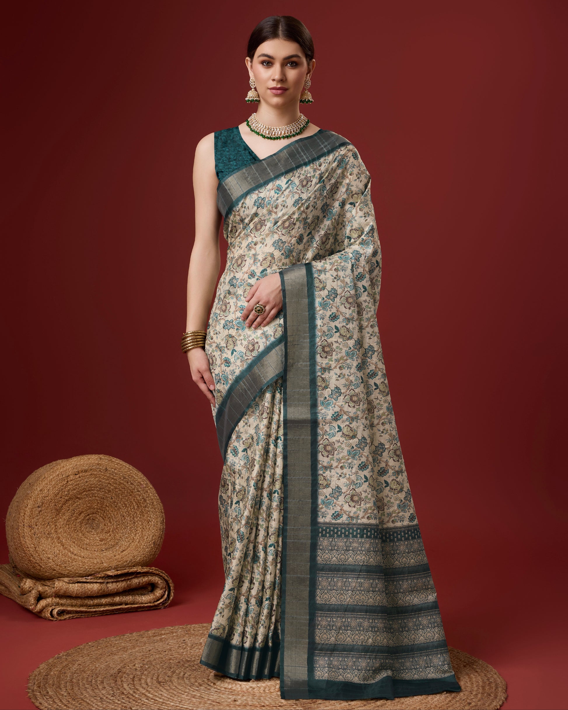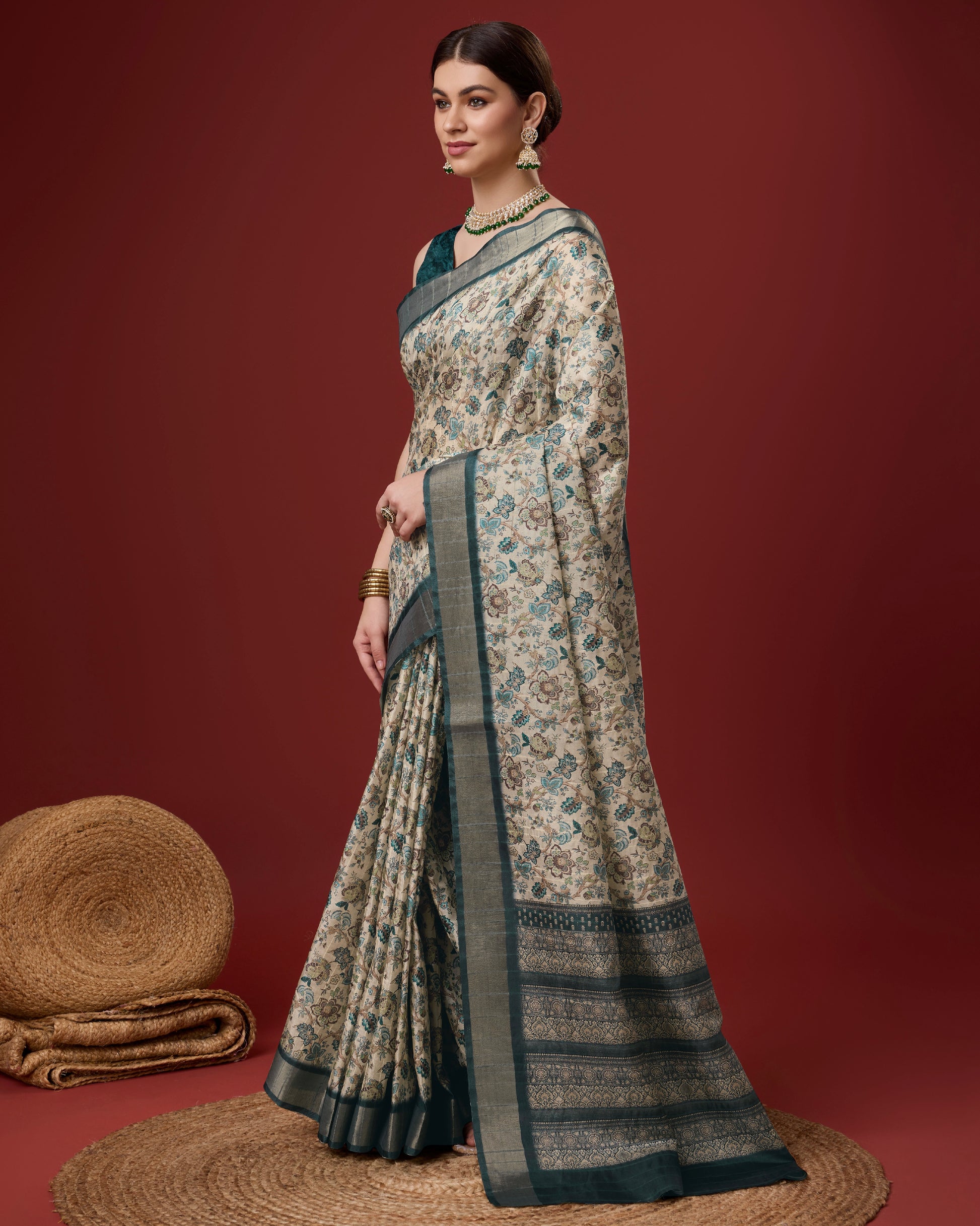 Digital Print Design: This saree features stunning digital prints that bring the fabric to life with vibrant colors and intricate patterns. Digital printing technology allows for more detailed and precise designs compared to traditional printing methods, resulting in a saree that is both eye-catching and unique. The prints are designed to be colorfast, ensuring that the saree maintains its beauty wash after wash.
