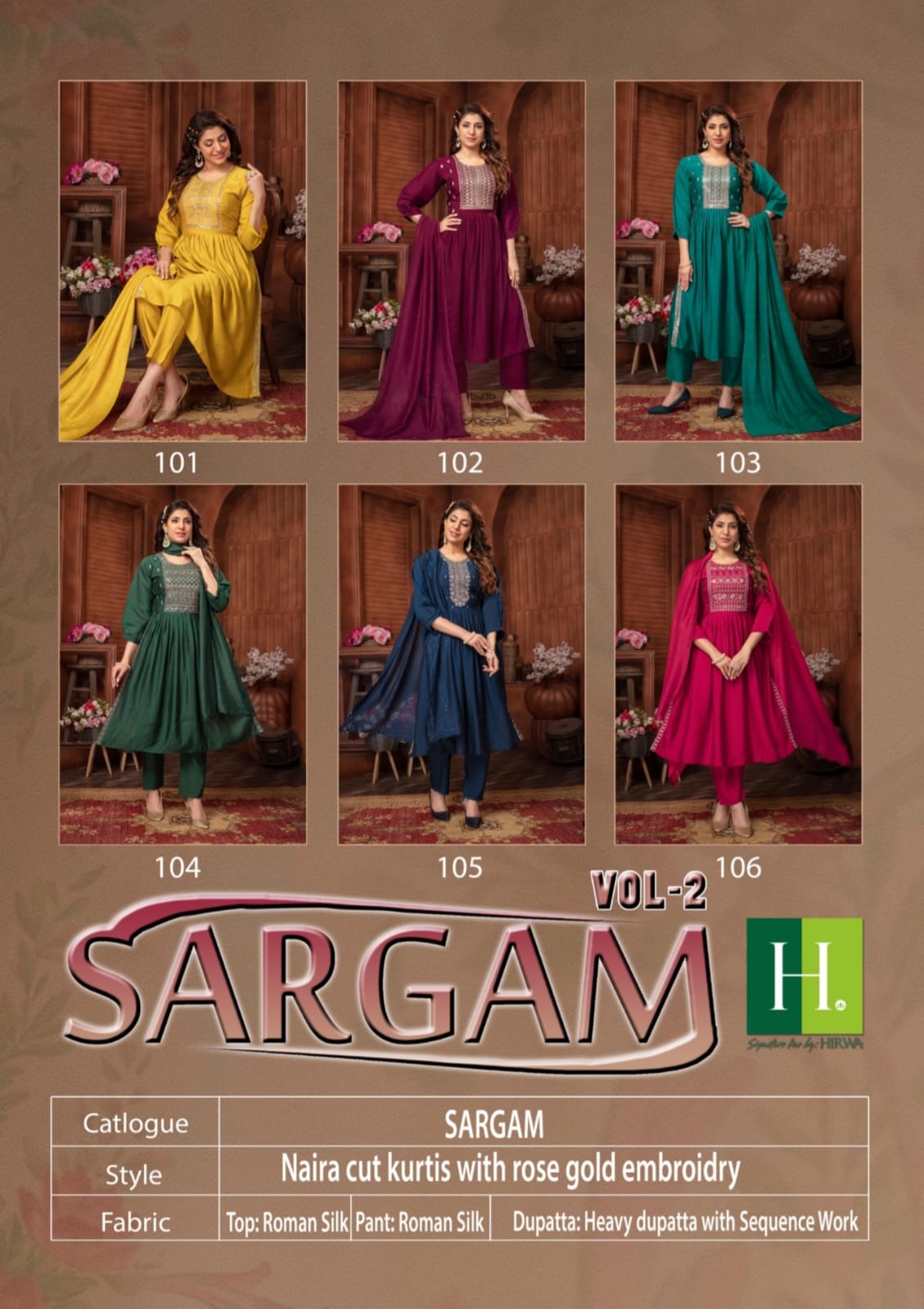 Hirwa Sargam Series 101-106 Roman Silk Kurti (850x06)