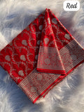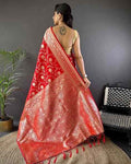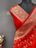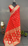 Red Pure Banarasi Mushro Satin Silk Saree