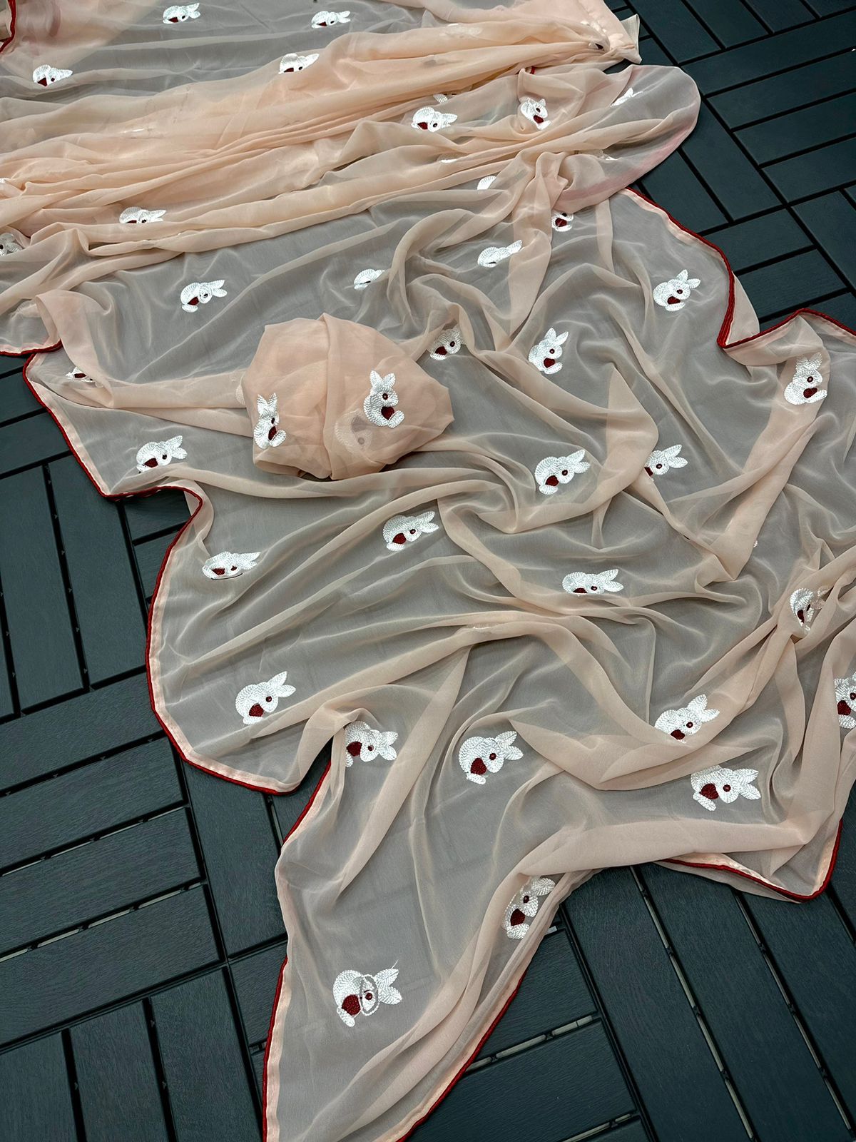 Beautiful Designer Royal Rabit Georgette Ready To Wear Saree