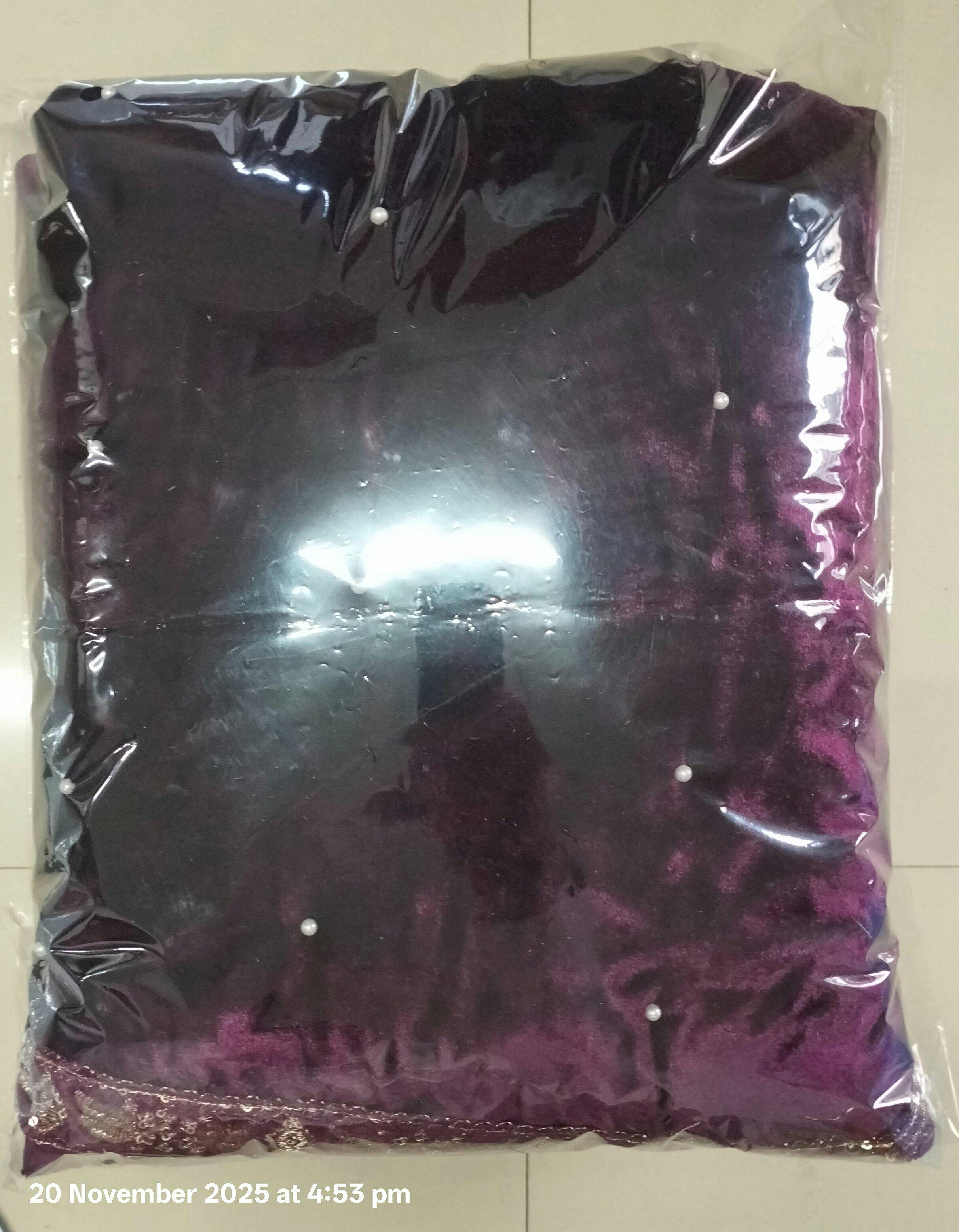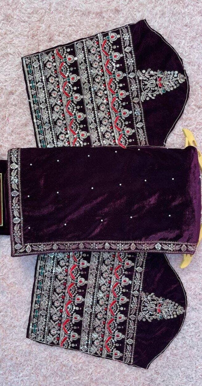 Maroon Pure 9000 Velvet With Embroidery Work Velvet Saree
