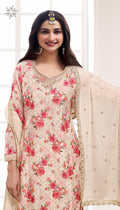 FABRIC DETAILS : HEAVY EMBROUDERED DIGITAL PRINTED CHINON TOP WITH EMBROIDERED CHINON SHARARA AND DUPATTA