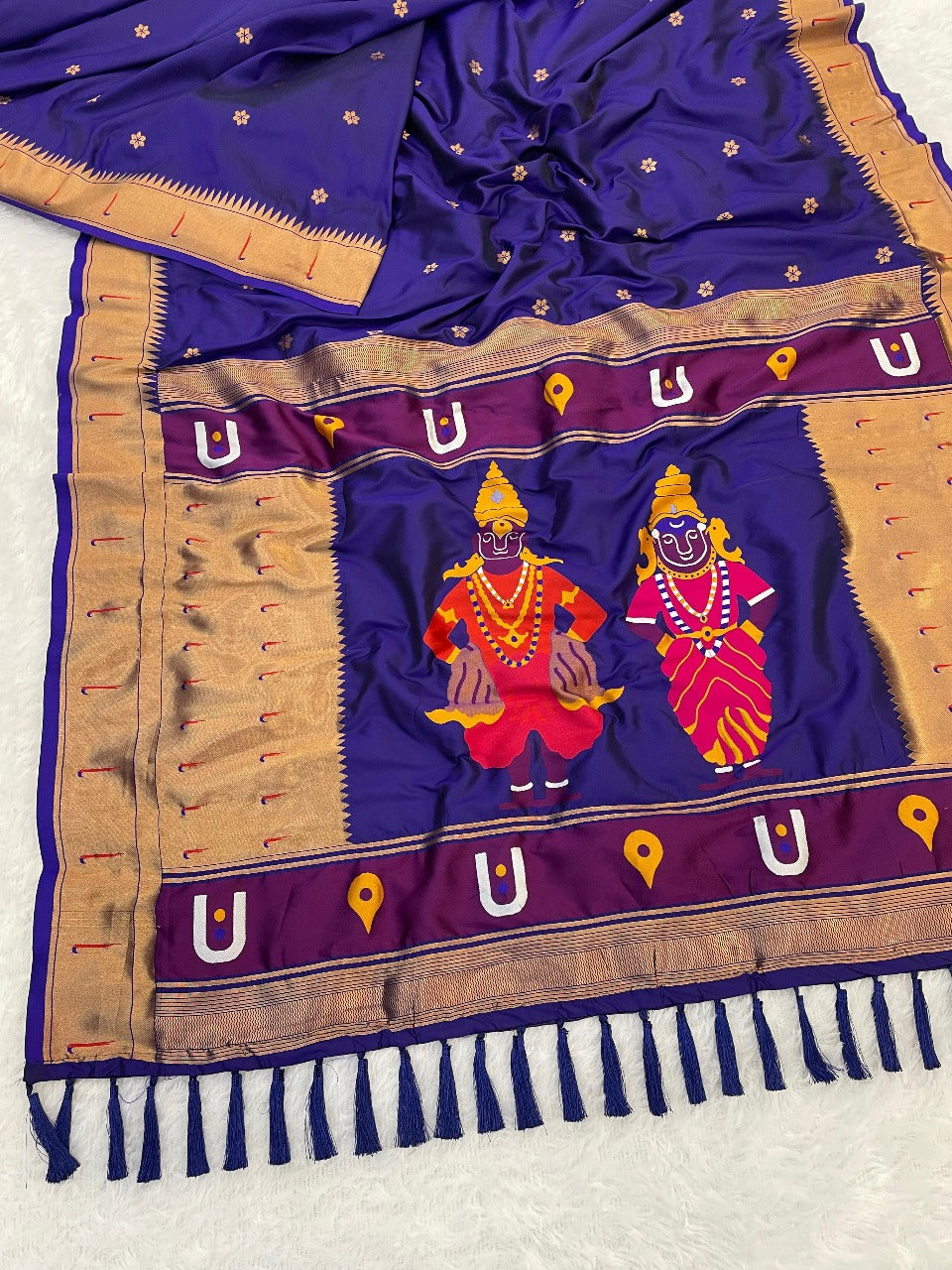 Violet Zari Woven Vitthala God Special Paithani Silk Saree