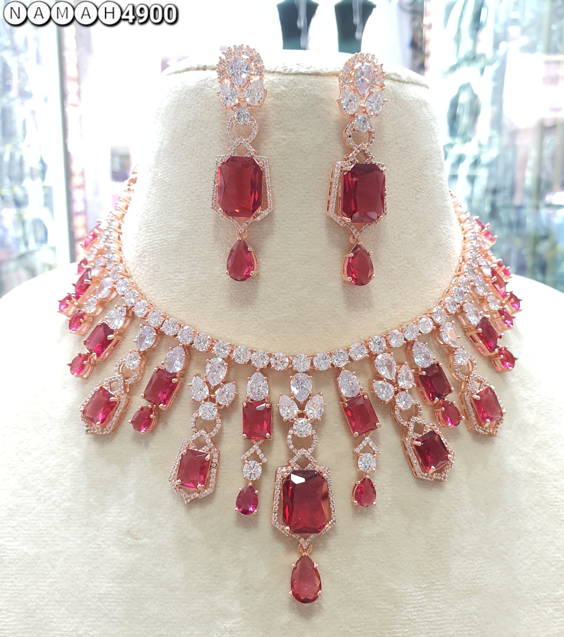Wedding Special American Diamond Antique Stone Necklace with Earrings Jewellery