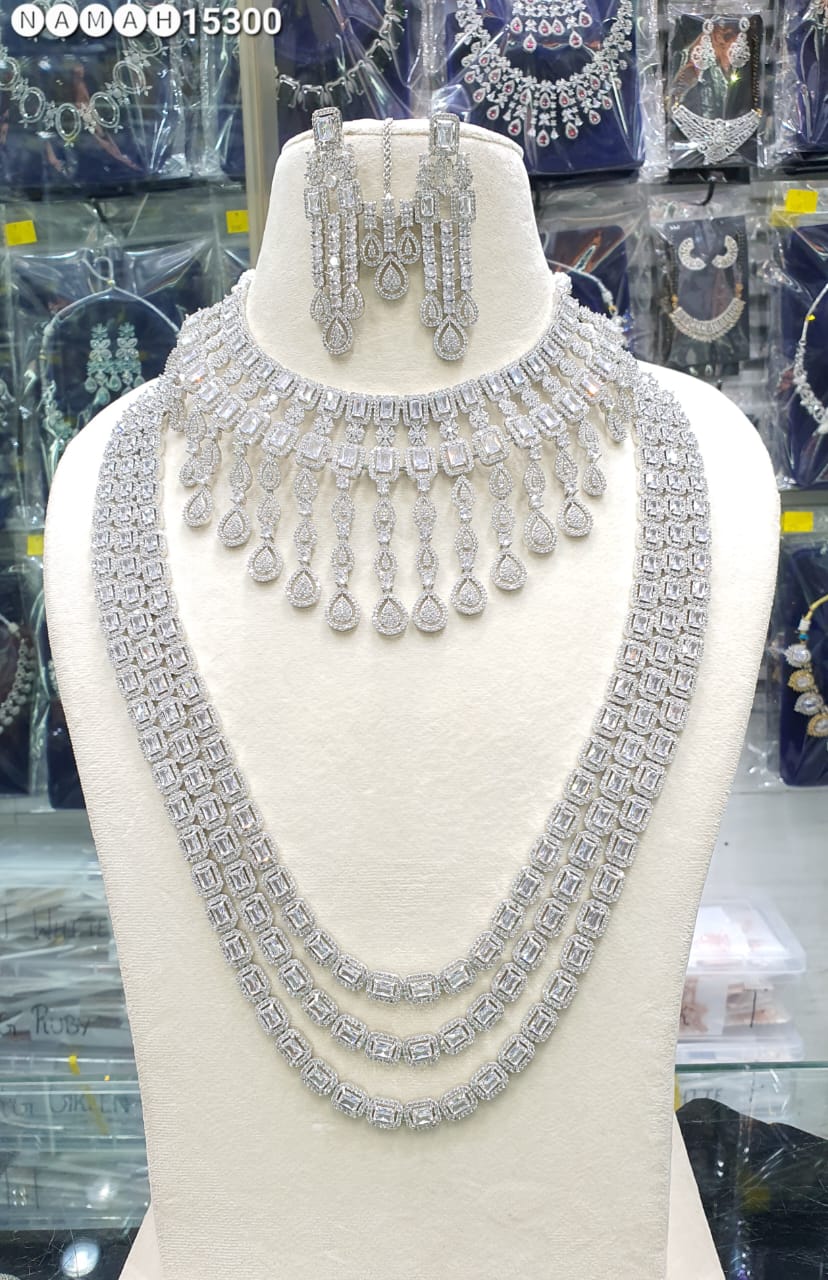 Wedding Special American Diamond Antique Stone Necklace with Earrings Jewellery