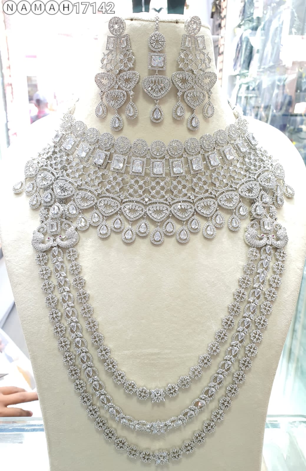 Wedding Special American Diamond Antique Stone Necklace with Earrings Jewellery