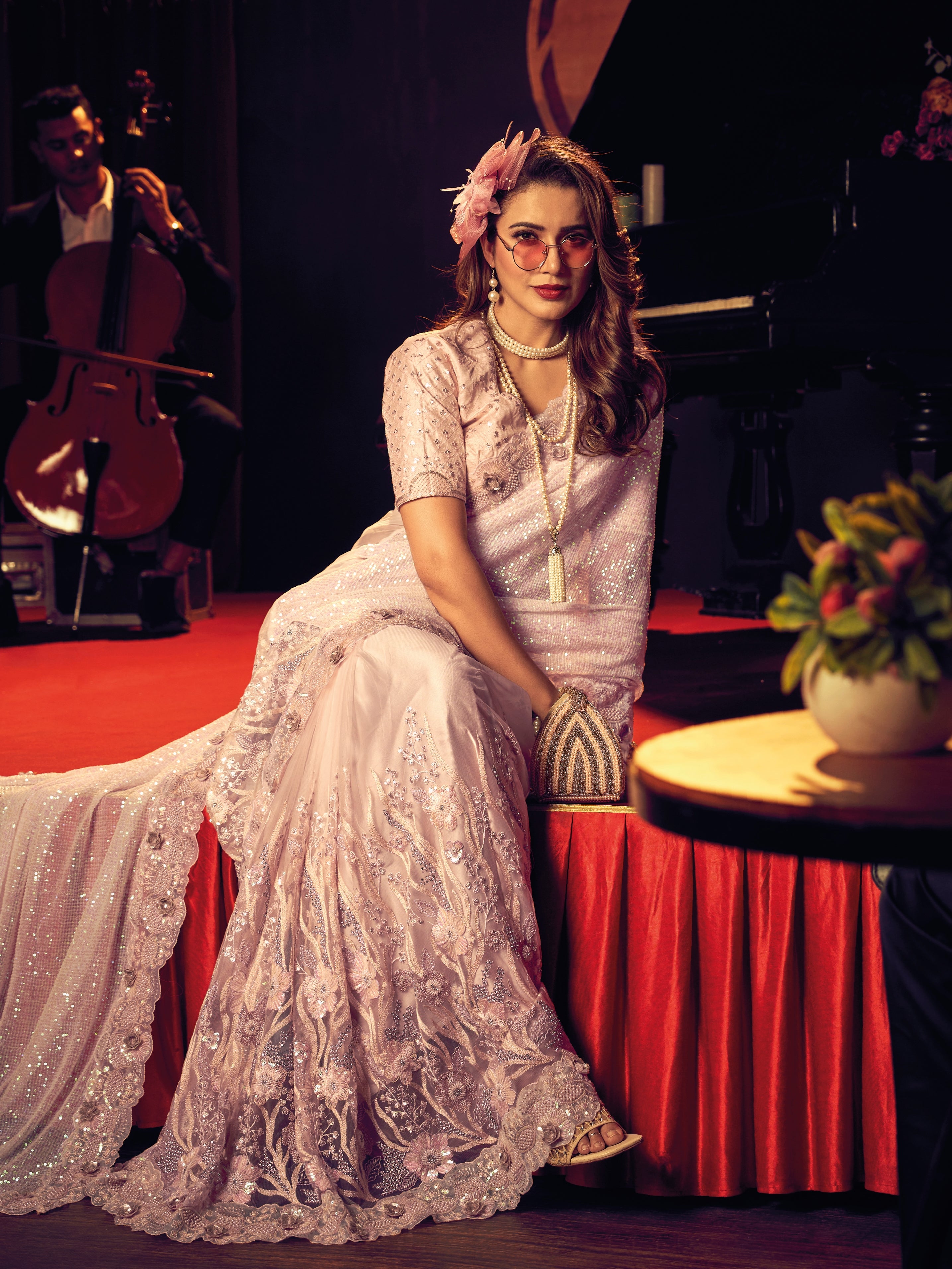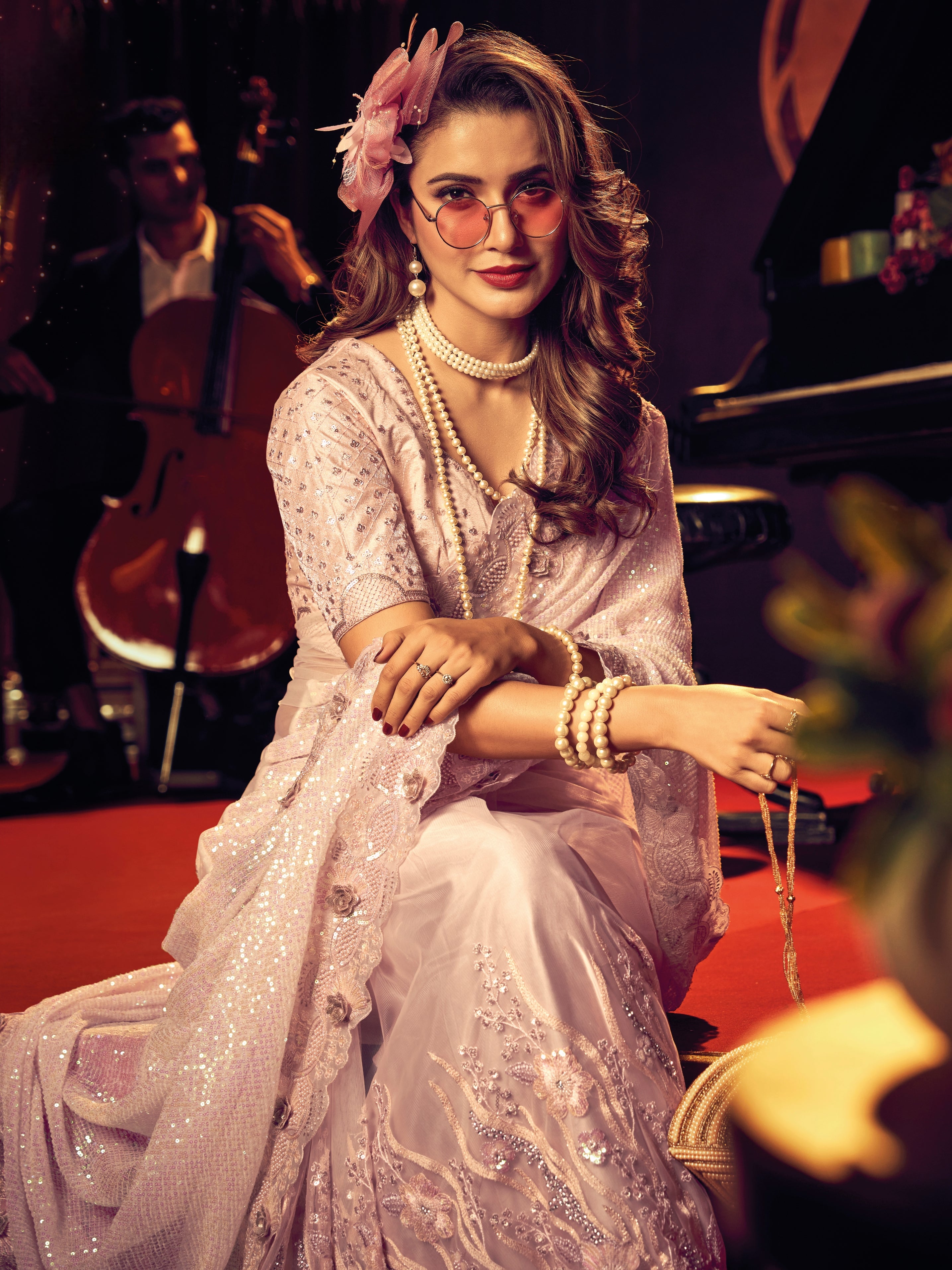 White Digital Net Saree with Heavy Zari & Patchwork