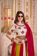 White Multicolor Navratri Chaniya Choli with Mirror Embroidery