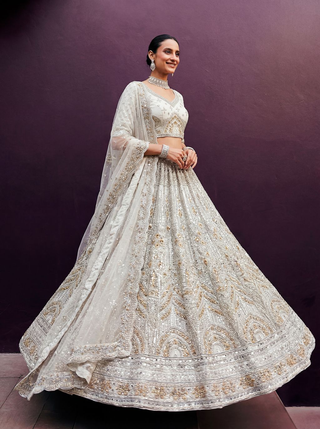 White Pure Soft Net Heavy Embroidery Work Bridal Lehenga