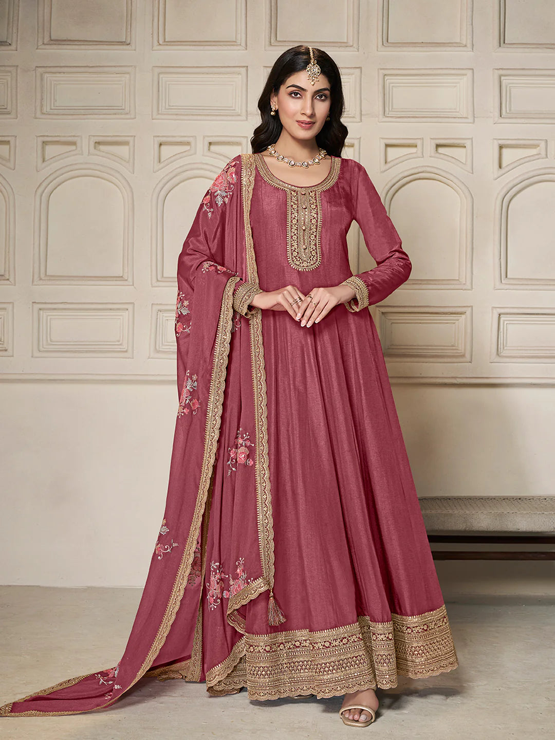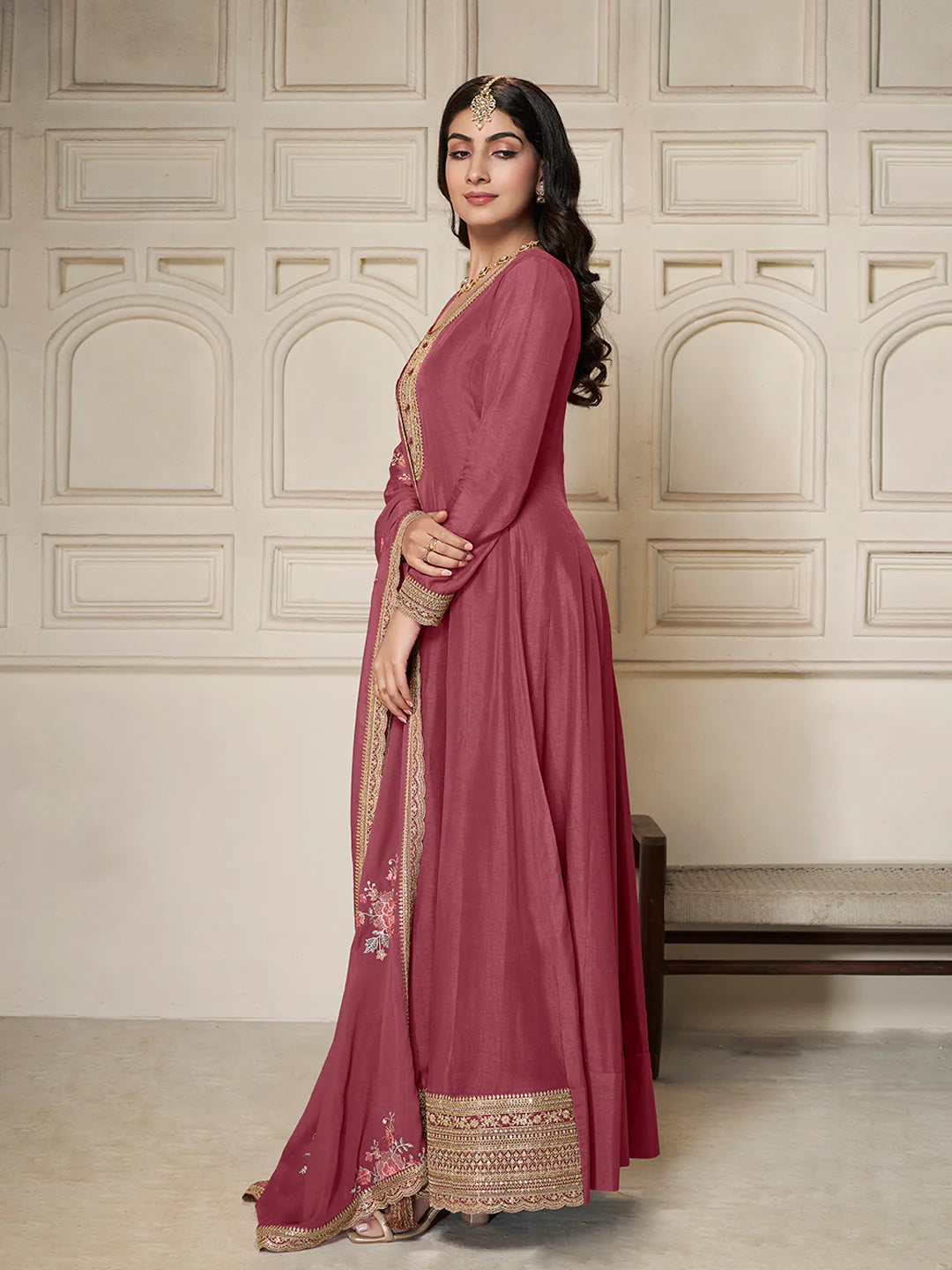 Wine Dola Silk Anarkali Suit with Heavy Sequins Hand Embroidery