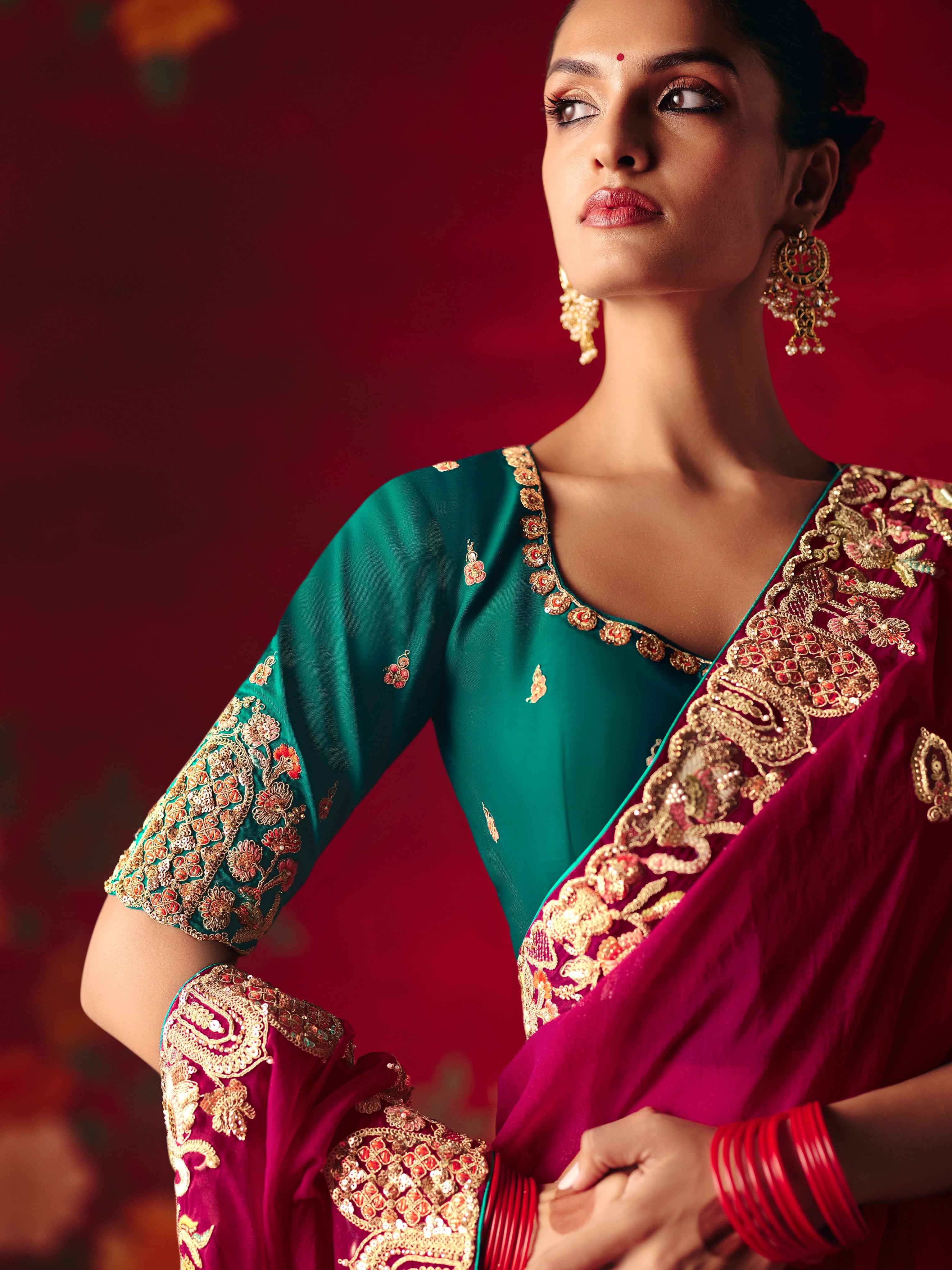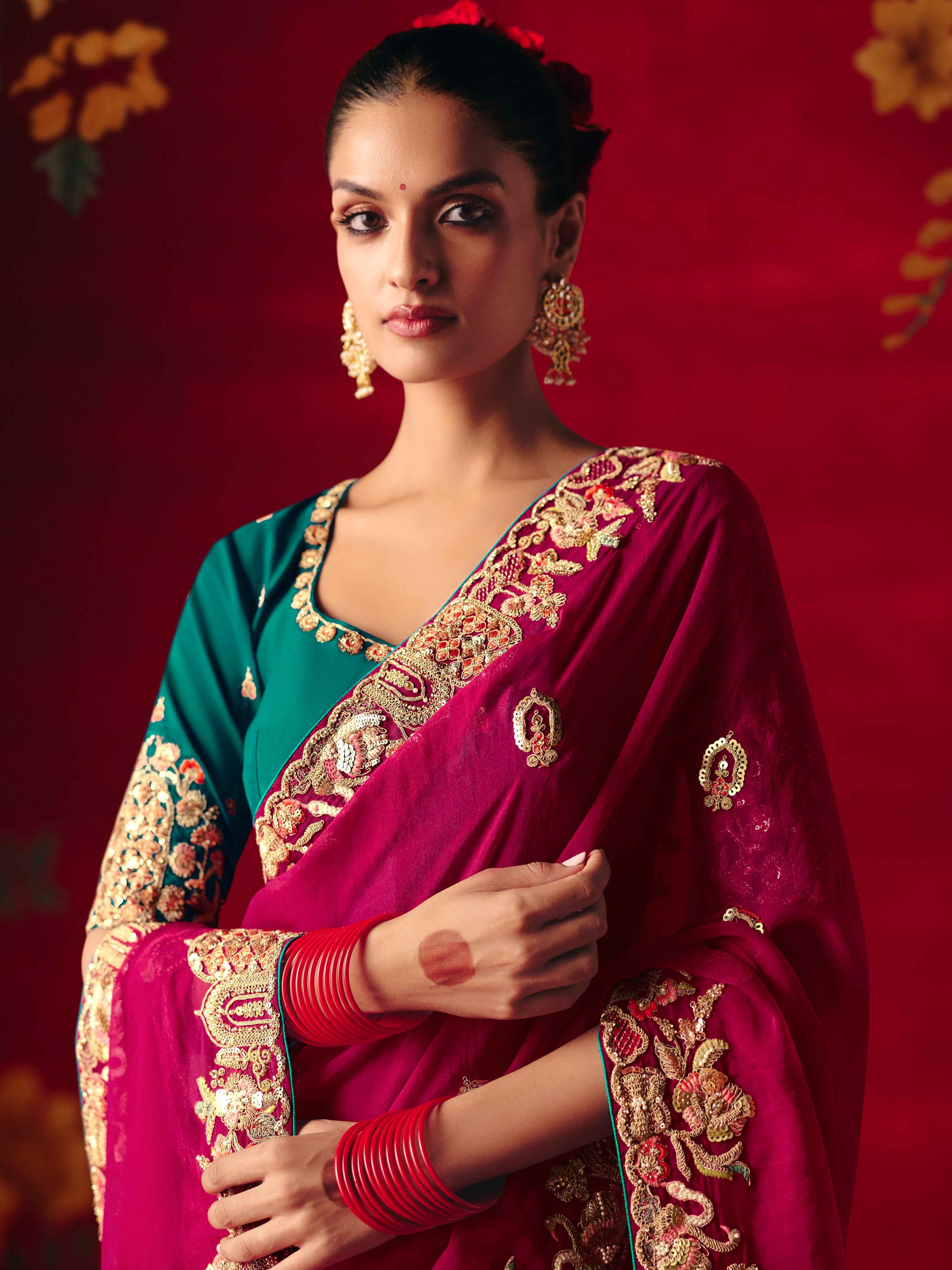 Wine Red Fancy Saree with Heavy Sequins Embroidery