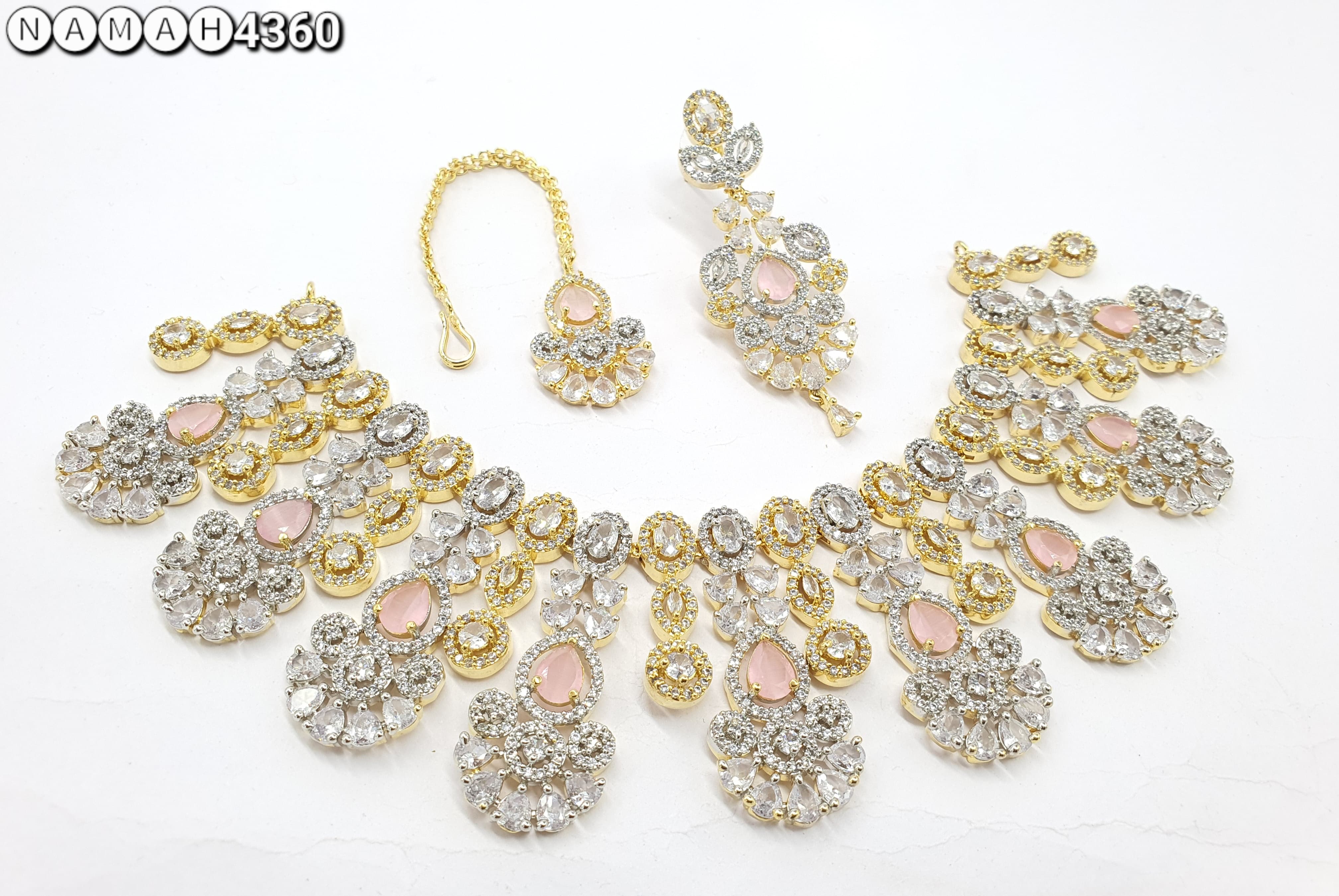 New CollectionsAmerican Diamond Antique Stone Necklace with Earrings Jewellery