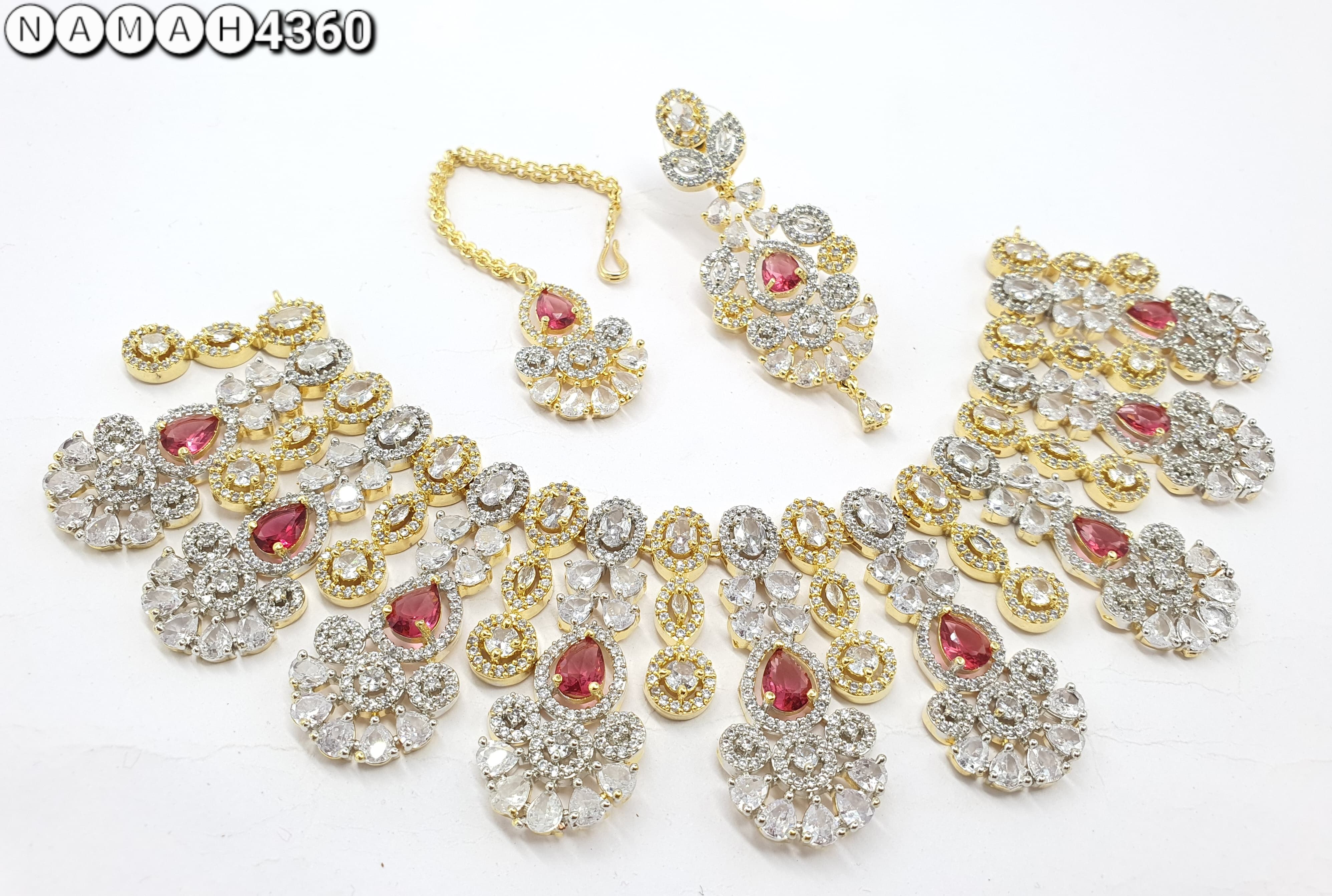 New CollectionsAmerican Diamond Antique Stone Necklace with Earrings Jewellery