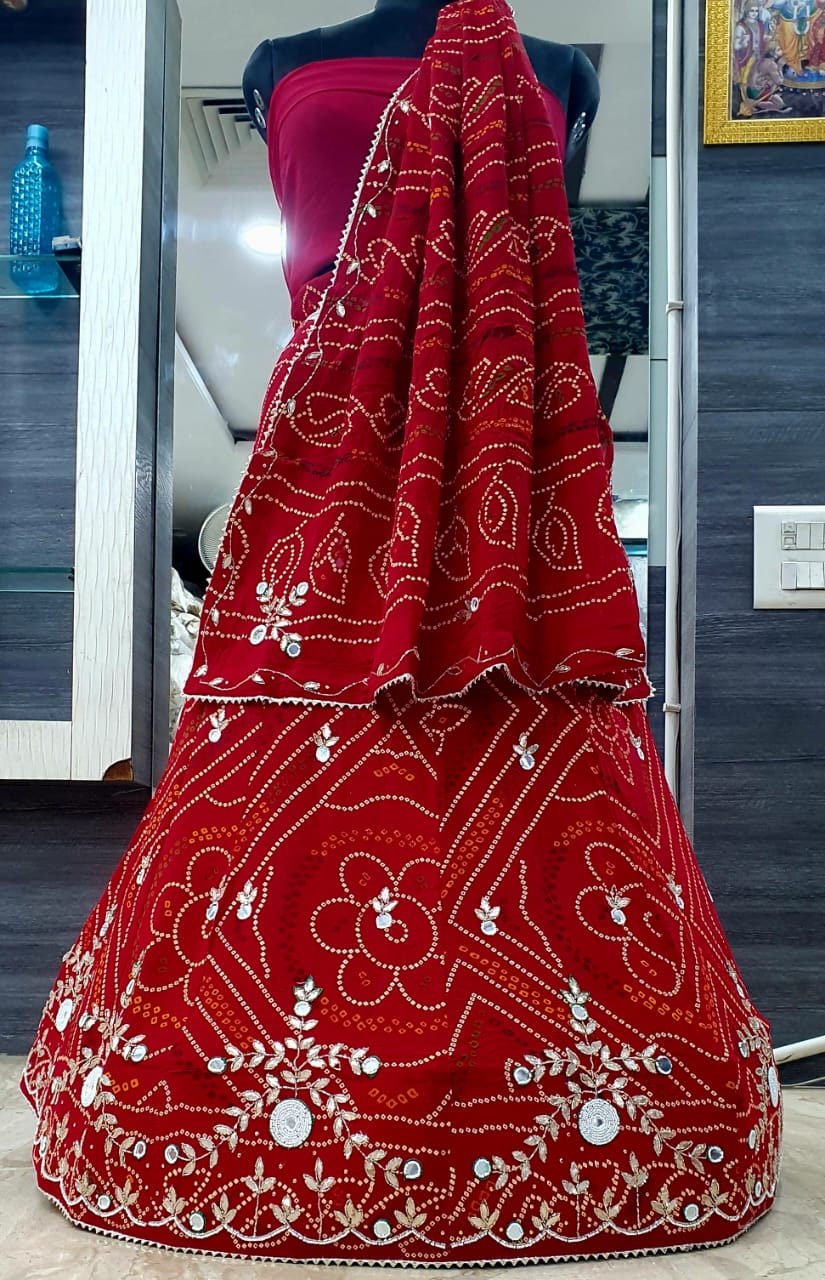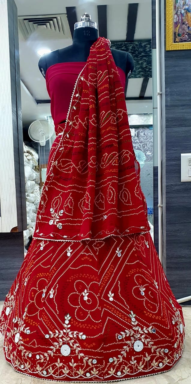 • Type: Rajasthani Georgette Bandhej Lehenga Choli