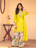 Yellow Chinon Silk Embroidered Sharara Set with Dupatta