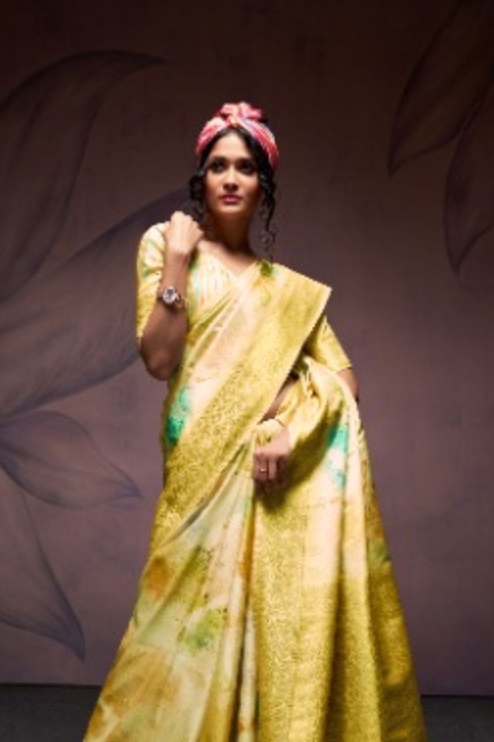 Yellow Pure Banarasi Handloom Digital Printed Silk Saree