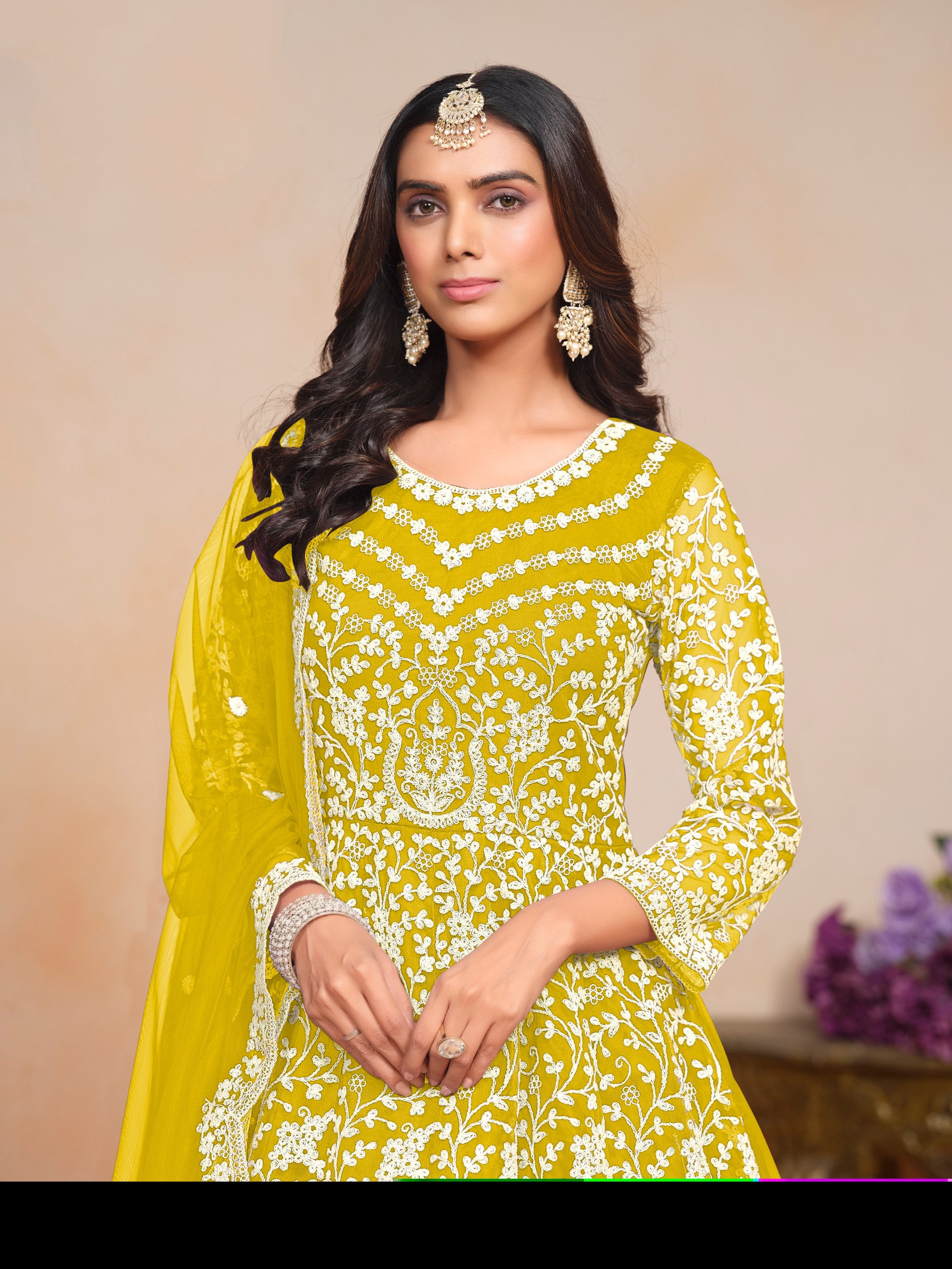 Yellow Pure Georgette Long Floor Length Embroidered Work Readymade Gown