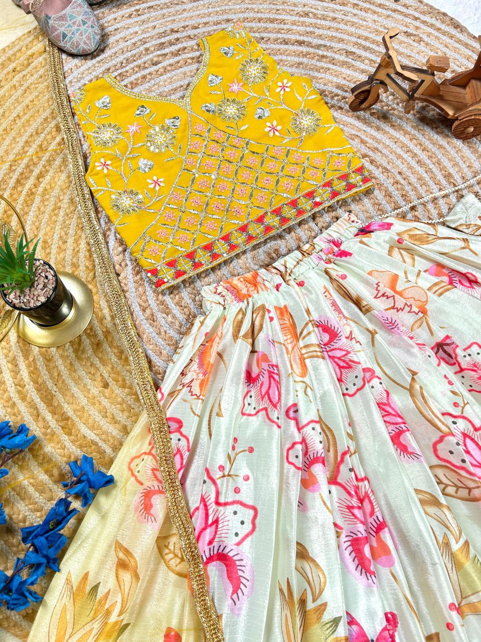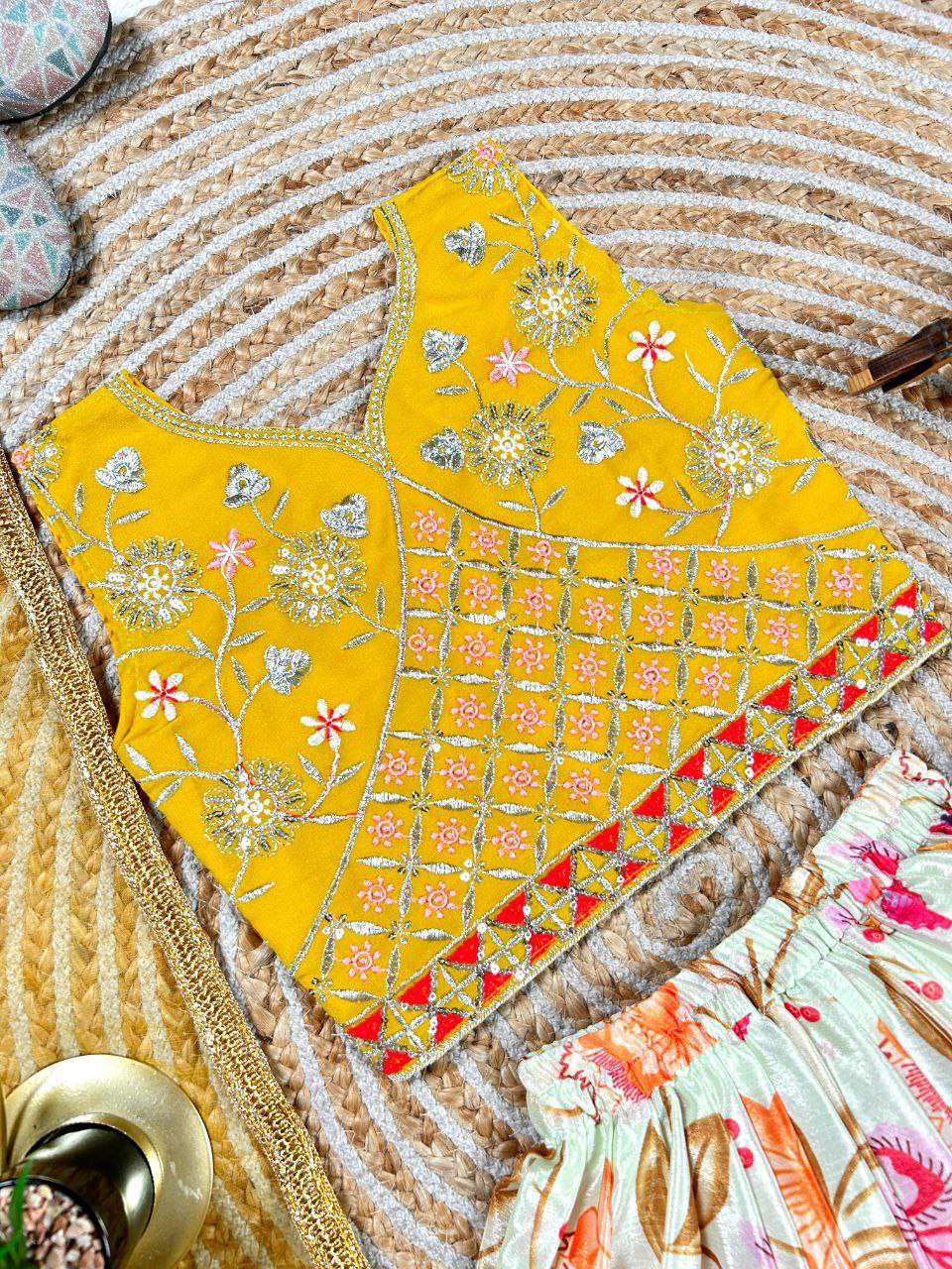 Yellow Pure Georgette With Sequins Kids Lehenga Choli