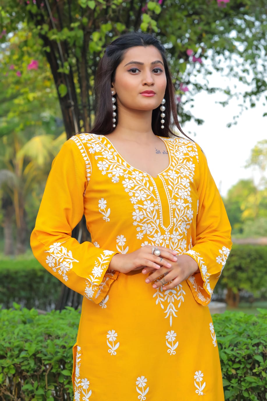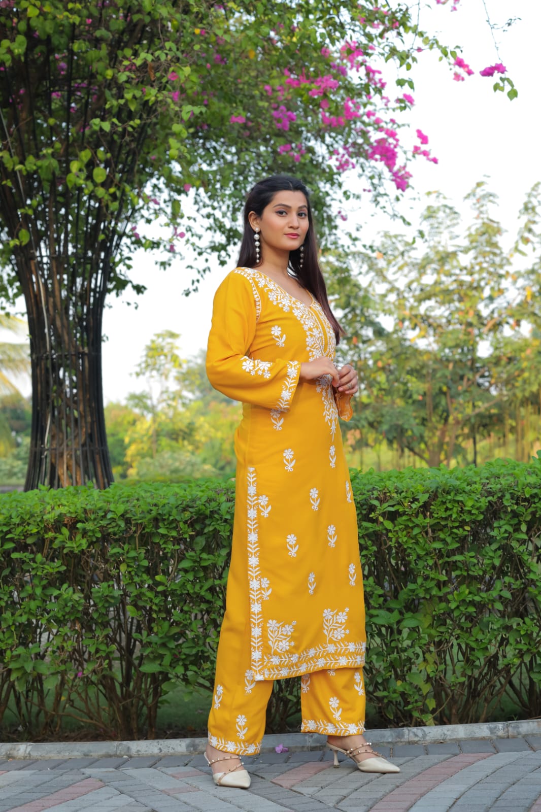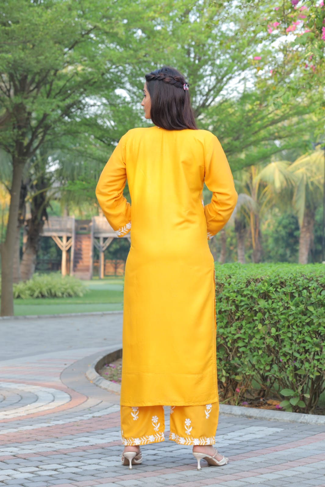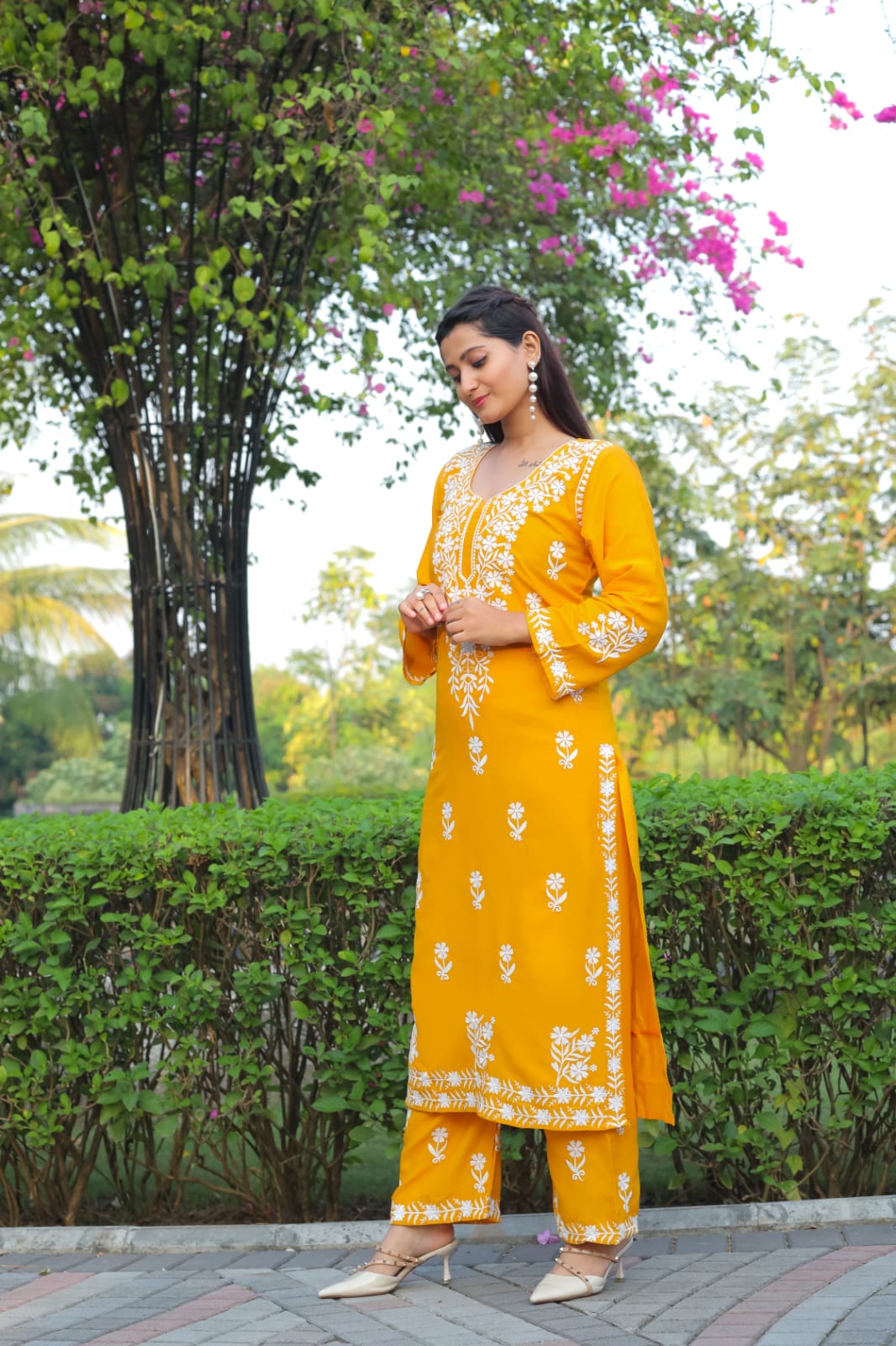 Yellow Pure Heavy Rayon With Chikankari Embroidery Work Plazo Suit