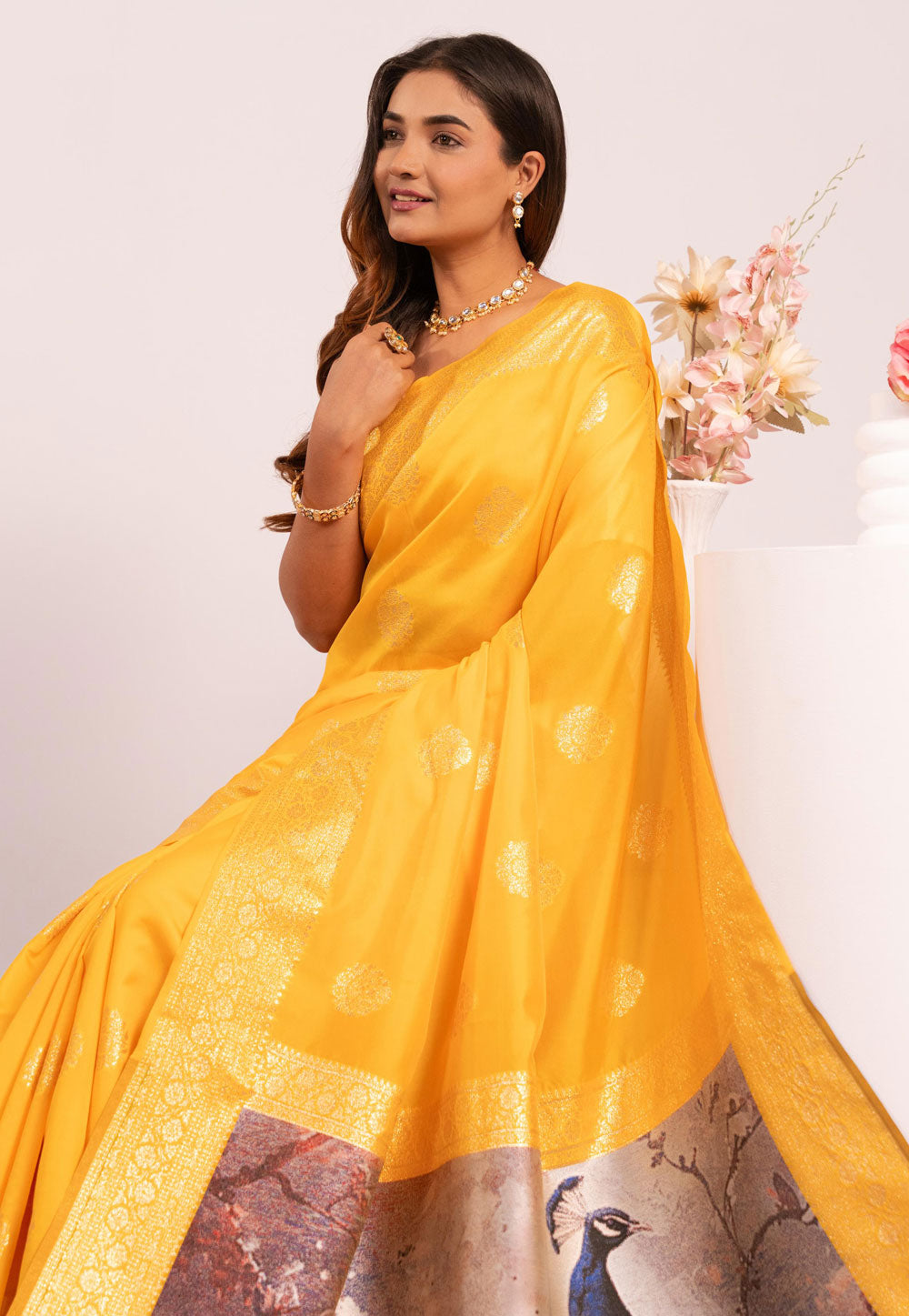 Yellow Pure Soft Banarasi Silk Zari Woven Saree