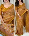 Yellow Pure Soft Cotton Kalamkari Print Saree