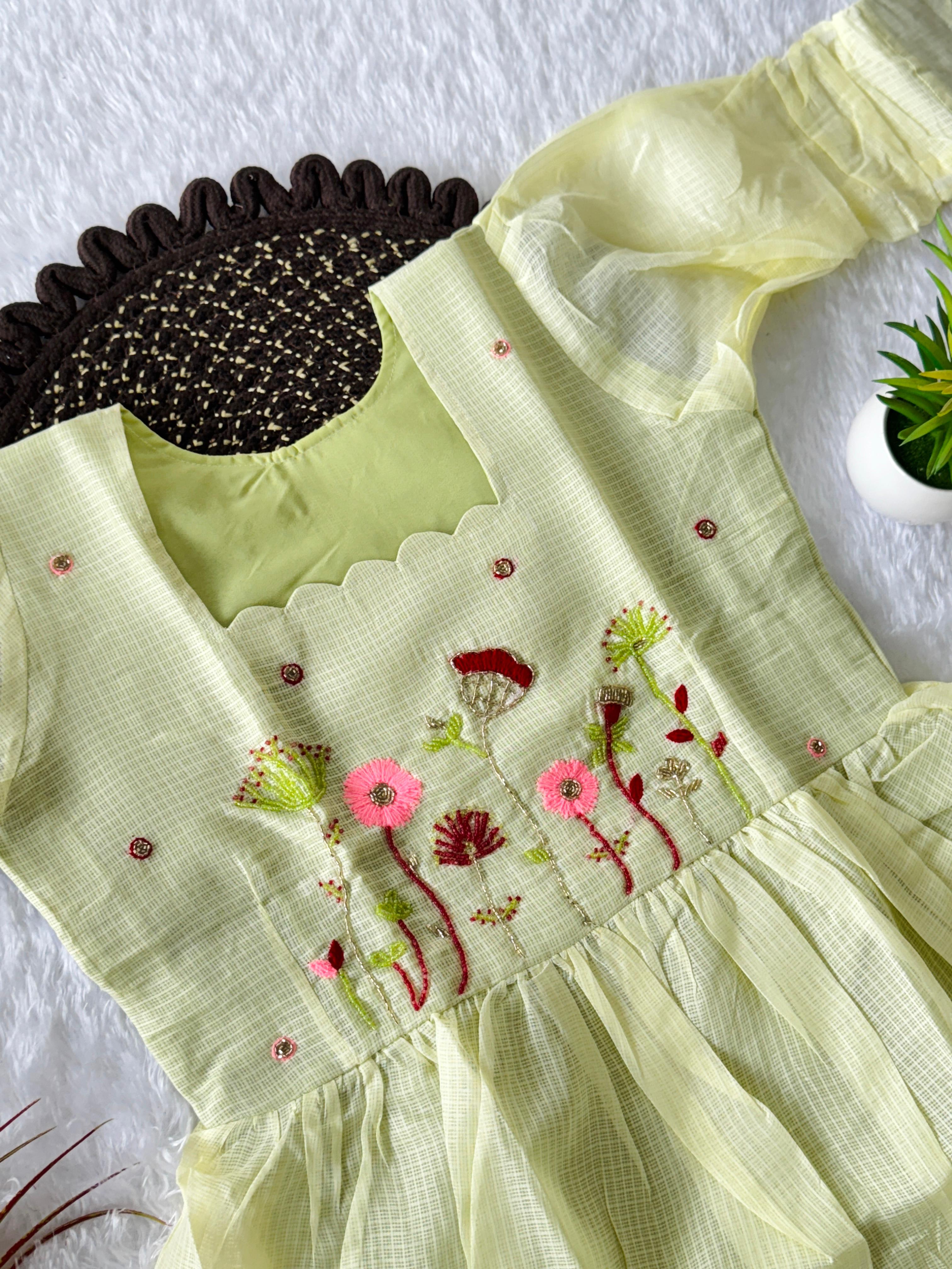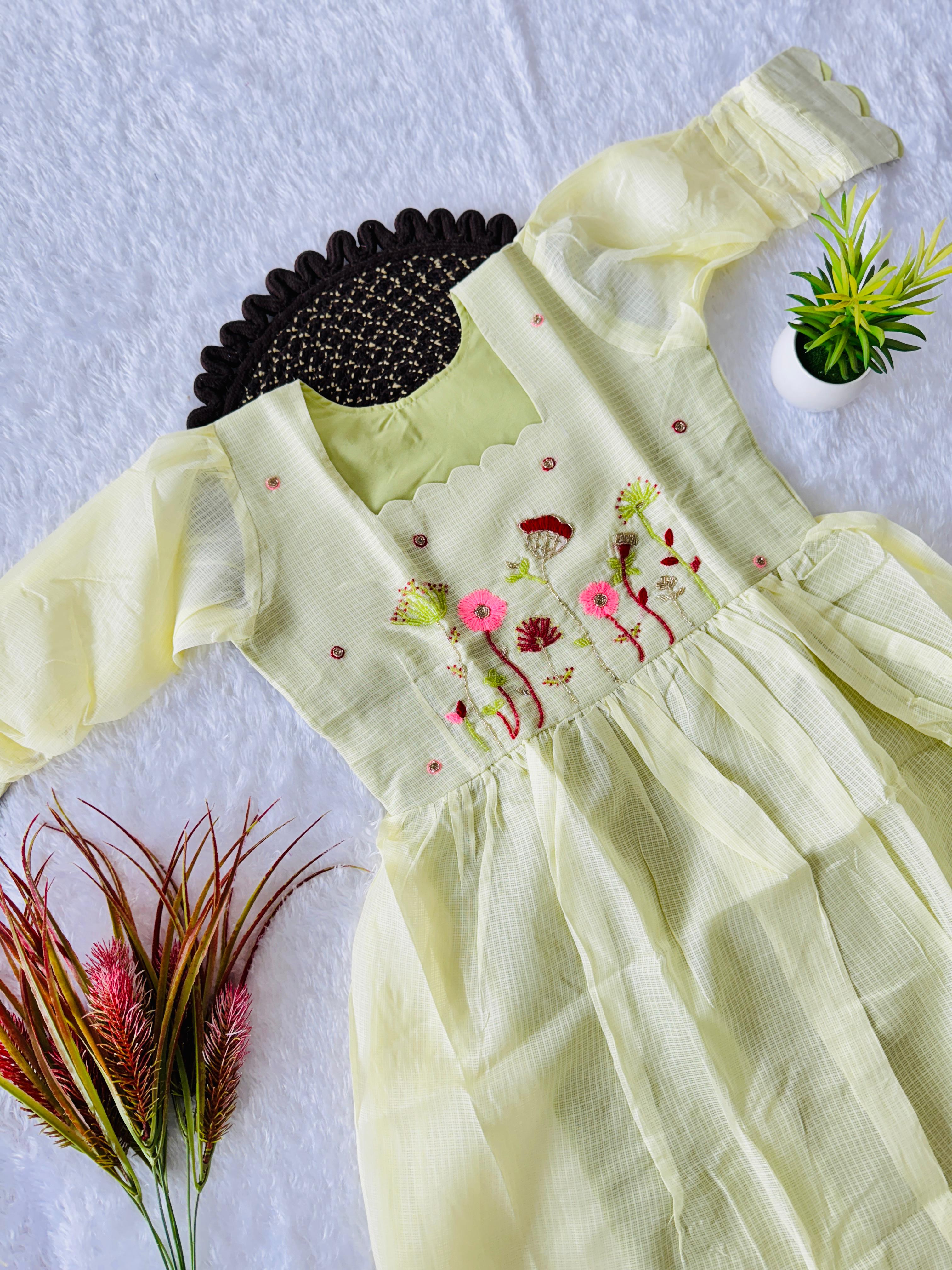 Yellow Pure Soft Kota Checks Long Readymade Gown