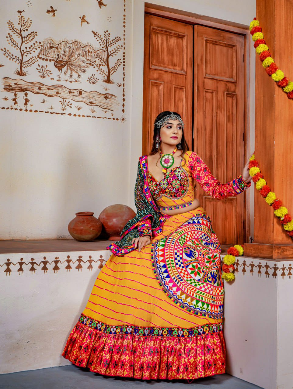 Yellow Suryamukhi Navaratri Lahenga Choli