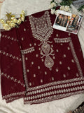 Georgette very heavy embroidered very beautiful dark shades semi stitched outfit with embroidered back as well