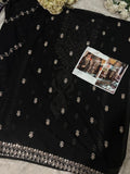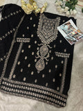 Georgette very heavy embroidered very beautiful dark shades semi stitched outfit with embroidered back as well